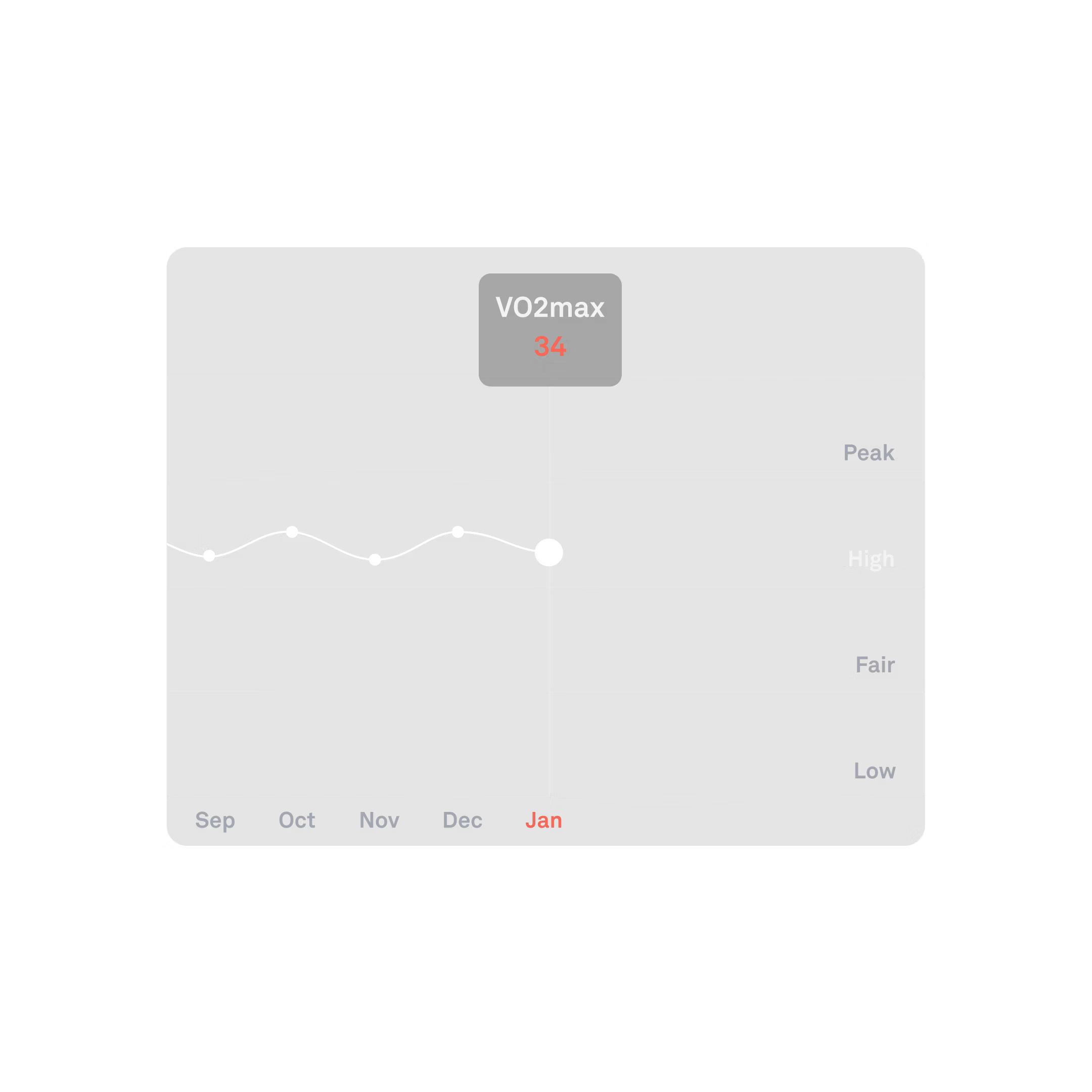 Your Cardio Capacity (VO2 Max) provides a window into the health of your heart and is tied to longevity. The greater your Cardio Capacity, the greater your body’s ability to supply oxygen to your muscles during physical activity.